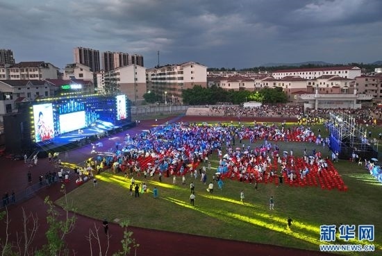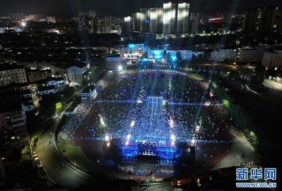 江西省吉安市萬安縣城北體育公園,鄉(xiāng)村音樂會現(xiàn)場人潮涌動。新華網(wǎng)發(fā) 邱哲 攝