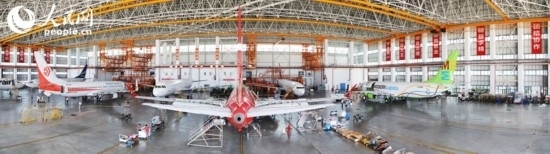 機(jī)庫內(nèi)等待維修的飛機(jī)。 人民網(wǎng)記者 孟凡盛攝
