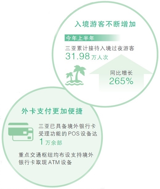 今年3月29日,三亞正式啟動(dòng)創(chuàng)建外籍來(lái)瓊?cè)藛T支付便利化示范城市工作,圍繞現(xiàn)鈔支付、數(shù)字人民幣支付、境外銀行卡支付、移動(dòng)支付、賬戶服務(wù)等五大支付服務(wù)體系,持續(xù)優(yōu)化“食住行游購(gòu)?qiáng)梳t(yī)”七大領(lǐng)域支付便利化水平,滿足短期差旅及中長(zhǎng)期學(xué)習(xí)、工作、居住等不同類型外籍來(lái)瓊?cè)藛T在三亞的支付需求。