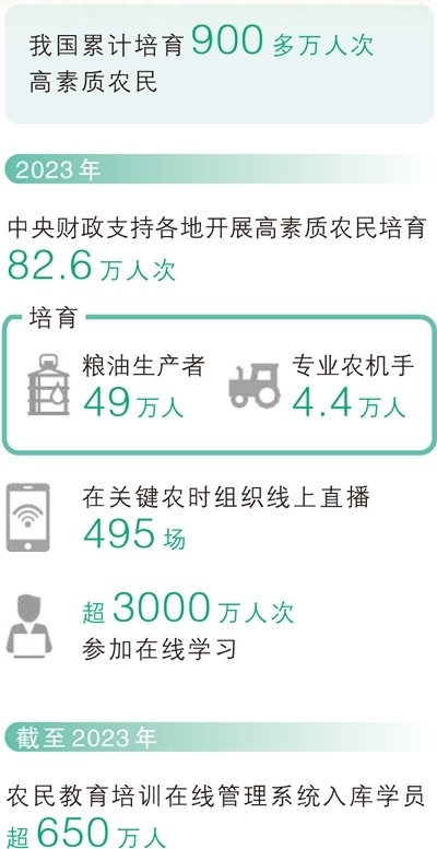 不久前,農(nóng)業(yè)農(nóng)村部辦公廳印發(fā)《關(guān)于做好2024年高素質(zhì)農(nóng)民培育工作的通知》,要求緊緊圍繞農(nóng)業(yè)農(nóng)村高質(zhì)量發(fā)展人才需求,堅持需求導(dǎo)向、產(chǎn)業(yè)主線、分層實施、全程培育,聚焦提升技術(shù)技能水平、提升產(chǎn)業(yè)發(fā)展能力、提升綜合素質(zhì)素養(yǎng),培育糧食安全守護者、產(chǎn)業(yè)發(fā)展帶頭人和鄉(xiāng)村振興主力軍,為推進鄉(xiāng)村全面振興、加快建設(shè)農(nóng)業(yè)強國提供堅實人才保障。