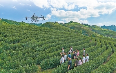 重慶市南川區(qū)在興隆鎮(zhèn)金花村白茶基地開展高素質(zhì)農(nóng)民植保無人機飛手培訓(xùn)。羅 川攝(人民視覺)