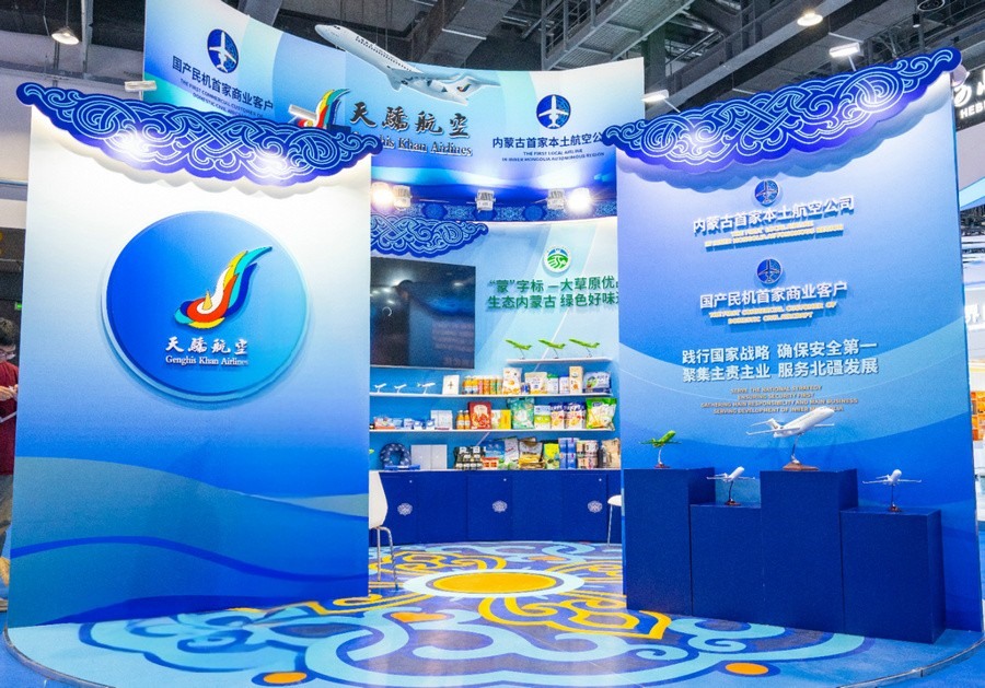 本次會展天驕航空以“天驕新風貌 聚焦內(nèi)蒙古”為主題,以濃郁的內(nèi)蒙古元素為特色,突出天驕航空作為內(nèi)蒙古自治區(qū)本土航空公司在完善區(qū)內(nèi)航線網(wǎng)絡、助推民航產(chǎn)業(yè)落地、服務地方經(jīng)濟發(fā)展等方面做出的努力,以及作為全國首家運營純國產(chǎn)民機機隊的航空運輸企業(yè),在國產(chǎn)民機的商業(yè)運營、品牌推廣等方面進行的探索。