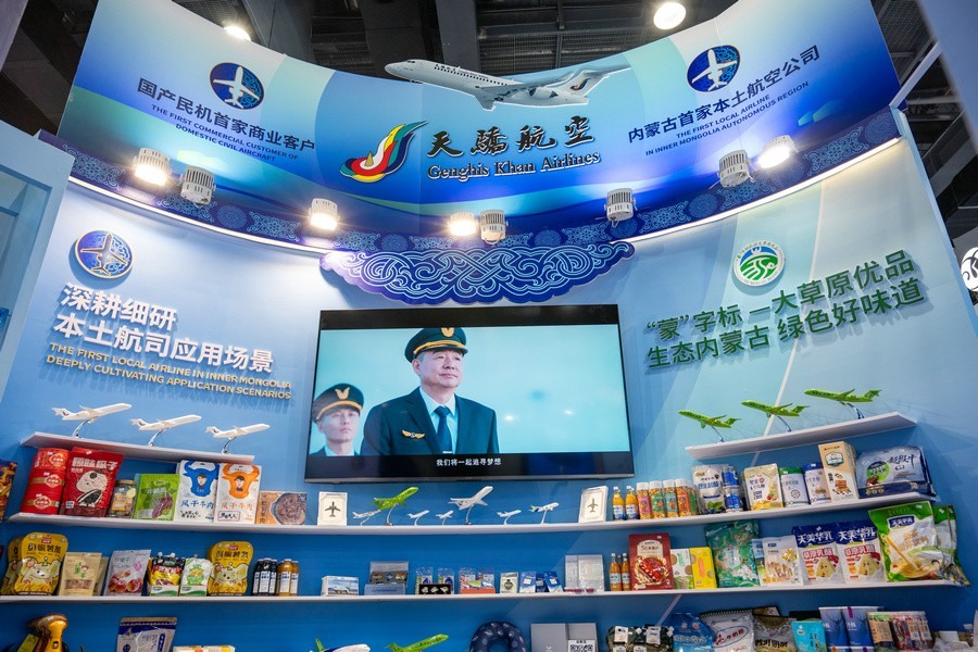 本次展會云集了200多家民航企事業(yè)單位、科研機構、高校和國外企業(yè)參展。以此次展會為契機,天驕航空將展區(qū)打造成為宣傳推廣內(nèi)蒙古自治區(qū)的平臺,聯(lián)合內(nèi)蒙古自治區(qū)農(nóng)牧廳將內(nèi)蒙古12盟市70余種特色產(chǎn)品面向國內(nèi)外民航企業(yè)、機場配餐以及廣大參展商、觀眾進行推薦,充分發(fā)揮民航輻射帶動作用強的特點,助力內(nèi)蒙古農(nóng)副產(chǎn)品拓展宣傳銷售渠道,推動鄉(xiāng)村振興的實施。