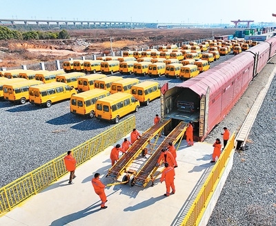 日前,搭載著290臺“江西制造”新能源汽車的中歐班列駛出南昌國際陸港,經(jīng)霍爾果斯口岸出境運抵哈薩克斯坦、烏茲別克斯坦等國家銷售。