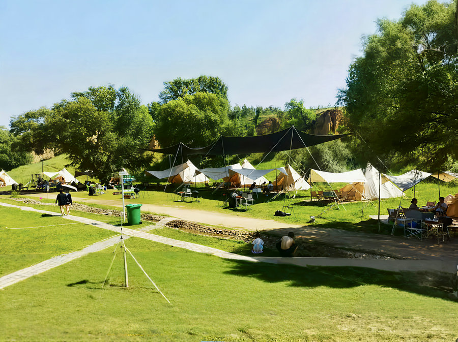 2022年,柳條溝村人裴示雨帶著資金與想法回到家鄉(xiāng),將目光投向了村里那條荒廢多年的山溝。他先付30萬元承包費(fèi),再砸下180萬元改造,300畝荒坡上崛起了自由野輕奢露營基地。如今,這里集露營、燒烤、氧吧體驗(yàn)于一體,成了城里人周末“躲清閑”的首選地。