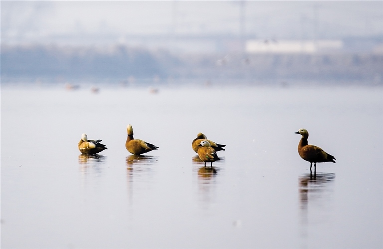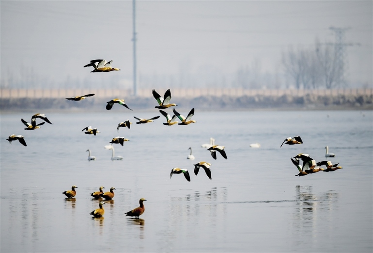 土默特左旗森林公安局副局長王強告訴記者,隨著生態(tài)環(huán)境的日益改善,海流水庫已成為候鳥遷徙途中的重要棲息“驛站”,每年春秋兩季在海流水庫過境的候鳥高達百萬只,種類涉及天鵝、遺鷗、大雁、蒼鷺等十余種,其中不乏國家一、二級重點保護動物。更可喜的是,現(xiàn)在海流水庫已經(jīng)有赤麻鴨長期駐留。