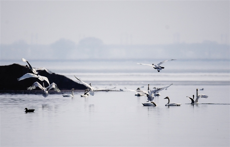 “現(xiàn)在湖面上的候鳥也就1萬多只,等到4月份的時候,候鳥才會大量歸來,屆時湖面上將出現(xiàn)4~5萬只候鳥集聚的畫面,很是壯觀?!蓖鯊娒棵空f起候鳥都很感慨,他說,隨著環(huán)境變好,候鳥越來越多,去年更是首次出現(xiàn)了紅腿鶴。為了保護候鳥安全過境,他們從2月中旬開始24小時不間斷巡視,并走街串戶進行保護野生動物的宣傳,突擊檢查轄區(qū)內(nèi)餐飲企業(yè),確保不會出現(xiàn)濫食野生動物的現(xiàn)象。同時,森林公安部門還在網(wǎng)上排查,嚴(yán)打網(wǎng)上交易野生動物行為。