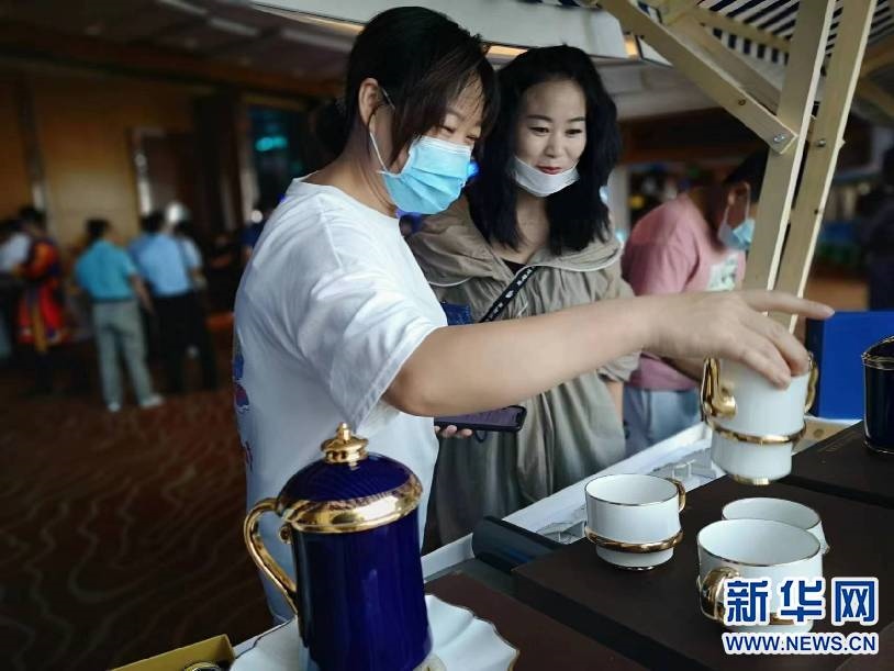 這是現(xiàn)場(chǎng)觀眾在挑選“內(nèi)蒙古禮物”文創(chuàng)產(chǎn)品。新華網(wǎng)發(fā)