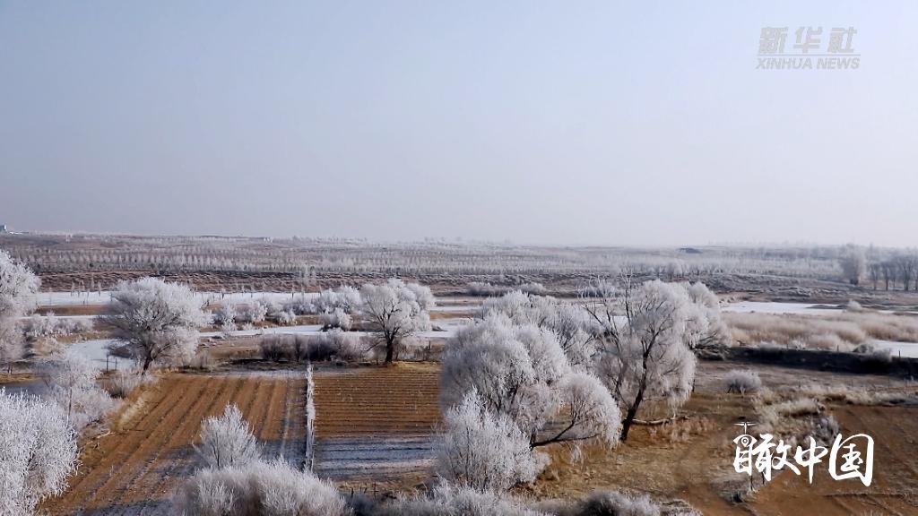 寒冬時節(jié),內(nèi)蒙古自治區(qū)鄂爾多斯市杭錦旗出現(xiàn)大面積的霧凇景觀,美不勝收。晶瑩剔透的冰晶掛滿樹梢,仿佛蒙上一層唯美的白紗。