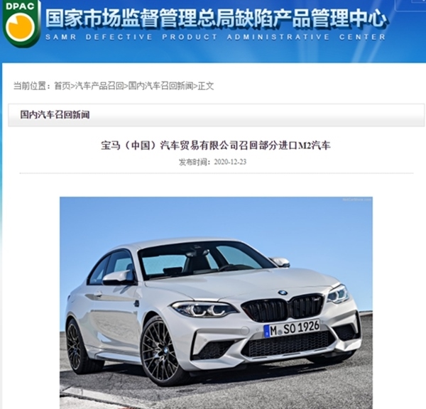 23日,寶馬宣布將自即日起,召回5輛進(jìn)口M2汽車。