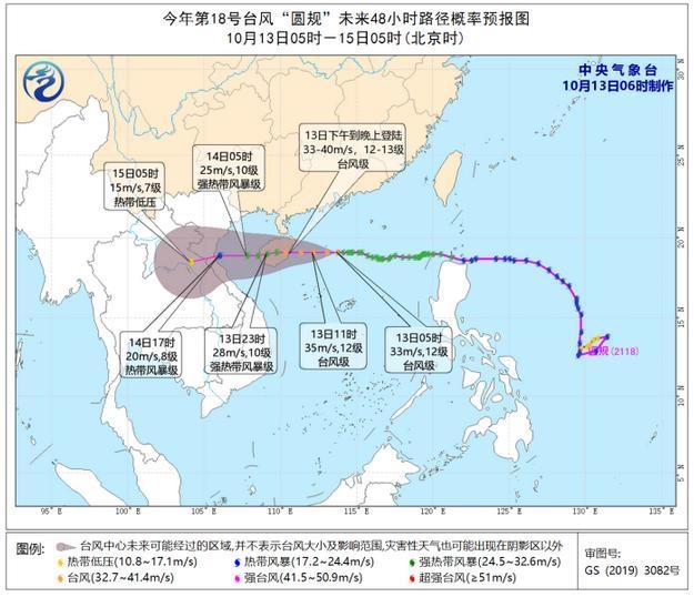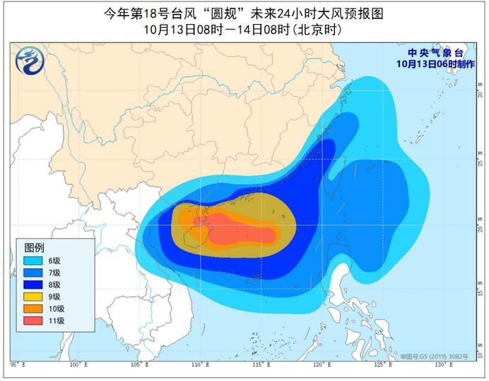 大風(fēng)預(yù)報(bào):13日08時(shí)至14日08時(shí),東海西部和南部、臺(tái)灣以東洋面、臺(tái)灣海峽、巴士海峽、南海中部和北部、北部灣、瓊州海峽、西沙群島、中沙群島和黃巖島附近海域,以及浙江沿海、福建沿海、廣東沿海、廣西沿海和海南島及其沿海將有6-8級(jí)、陣風(fēng)9-10級(jí)的大風(fēng),其中南海西北部、瓊州海峽、北部灣、廣東西部沿海及雷州半島、海南島及其沿海等地的部分海域或地區(qū)的風(fēng)力可達(dá)9-11級(jí)、陣風(fēng)11-13級(jí),“圓規(guī)”中心經(jīng)過(guò)的附近海域或地區(qū)的風(fēng)力有12-13級(jí),陣風(fēng)可達(dá)14-16級(jí)。