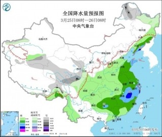 圖3 全國降水量預(yù)報圖(3月25日08時-26日08時)