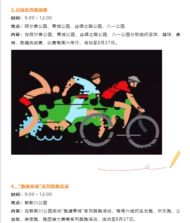 本次運(yùn)動(dòng)會(huì)認(rèn)真踐行“以人民為中心”辦賽理念,創(chuàng)新探索聚集少、規(guī)模小、符合大眾運(yùn)動(dòng)口味的內(nèi)蒙古賽馬場(chǎng)城市三項(xiàng)賽,包含跑步3000米、跳繩200個(gè)和動(dòng)感單車騎行5公里3個(gè)項(xiàng)目比賽。此外,還將舉辦公園系列挑戰(zhàn)賽、“跑遍青城”系列路跑活動(dòng)等,讓群眾在暢享運(yùn)動(dòng)的過程中盡情領(lǐng)略城市綠景的清新曼妙,進(jìn)一步推動(dòng)全民健身與全民健康深度融合。