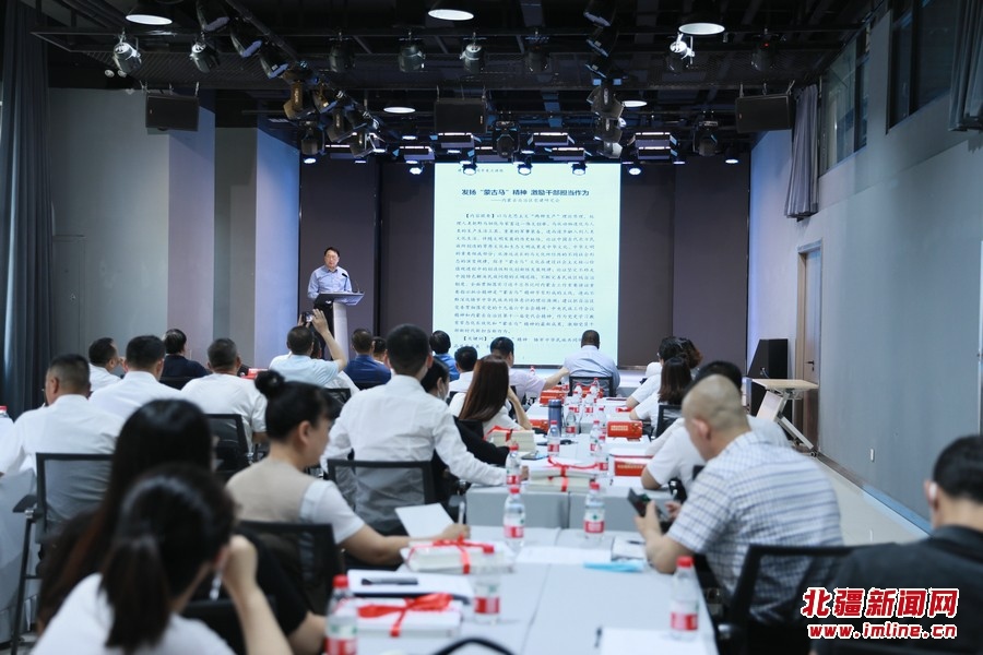 “蒙古馬精神,是吃苦耐勞的奉獻(xiàn)精神、一往無前的進(jìn)取精神、不達(dá)目的決不罷休的奮斗精神。它的本質(zhì)是赤膽忠心的精神,發(fā)揚的是忠于職守的精神,做到了不忘初心、牢記使命的現(xiàn)實途徑?!碑?dāng)天,內(nèi)蒙古自治區(qū)黨建研究會特邀研究員、呼倫貝爾市委原二級巡視員、原內(nèi)蒙古森工集團(tuán)組織部部長哈斯,為所有黨員講授“蒙古馬精神”主題黨課。