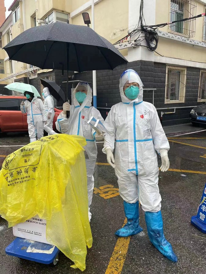 “我們倆都是機(jī)關(guān)下沉到社區(qū)的黨員志愿者。剛開始,大家都是自發(fā)的,我們每個人都是這樣,默默奉獻(xiàn),因?yàn)椋壹仁屈h員,也是社區(qū)的居民,這是我應(yīng)該做的?!毖惥暾f。