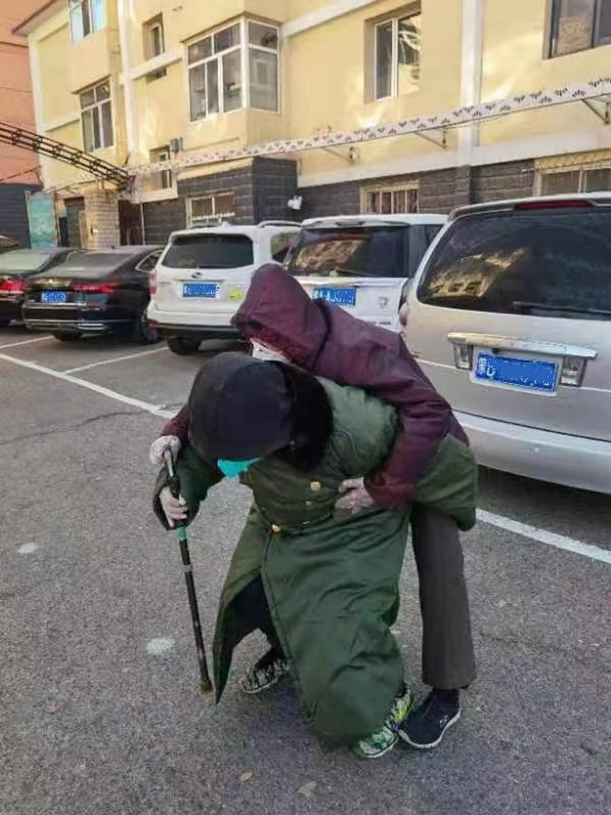 “還有一個老太太,剛做完手術(shù)時(shí)間不長,走路很慢,我就過去背上老人家去采集核酸。”張偉說,“不光張書府老人,我現(xiàn)在照顧著好幾個老人,都給他們留了電話,這些老人想吃什么菜了,會寫個單子聯(lián)系我,我會去給他們買回來。在這個小區(qū)里,有太多這樣的老人了,我們會盡自己所能,幫一個是一個?!?/p>