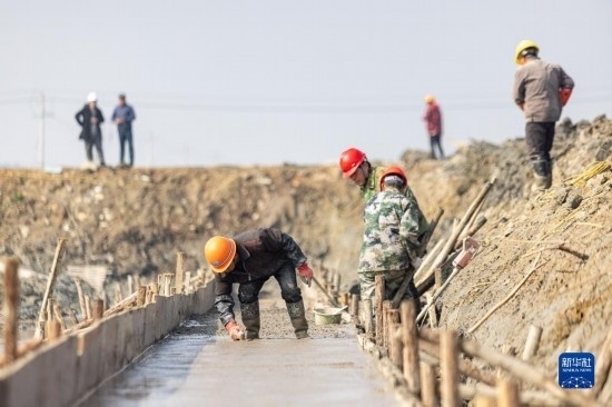2月16日,工人在浙江省湖州市長(zhǎng)興縣虹星橋鎮(zhèn)修建水渠。