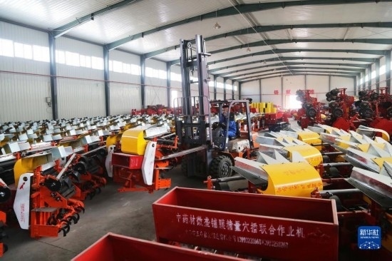 2月16日,在甘肅省定西市一家農(nóng)機(jī)制造企業(yè),工人在組裝農(nóng)機(jī)。