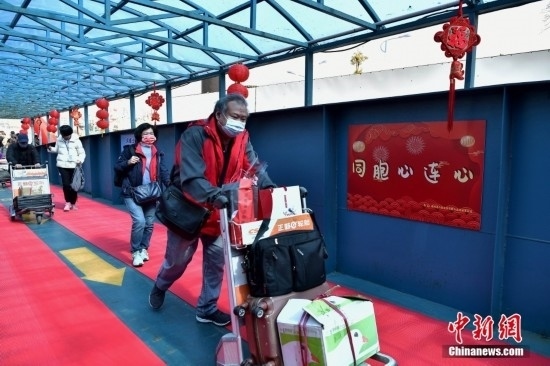 圖為辦理相關手續(xù)后走出福州港黃岐客運站的馬祖鄉(xiāng)親。中新社記者 張斌 攝