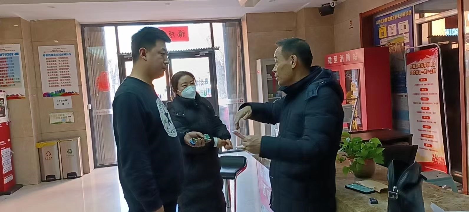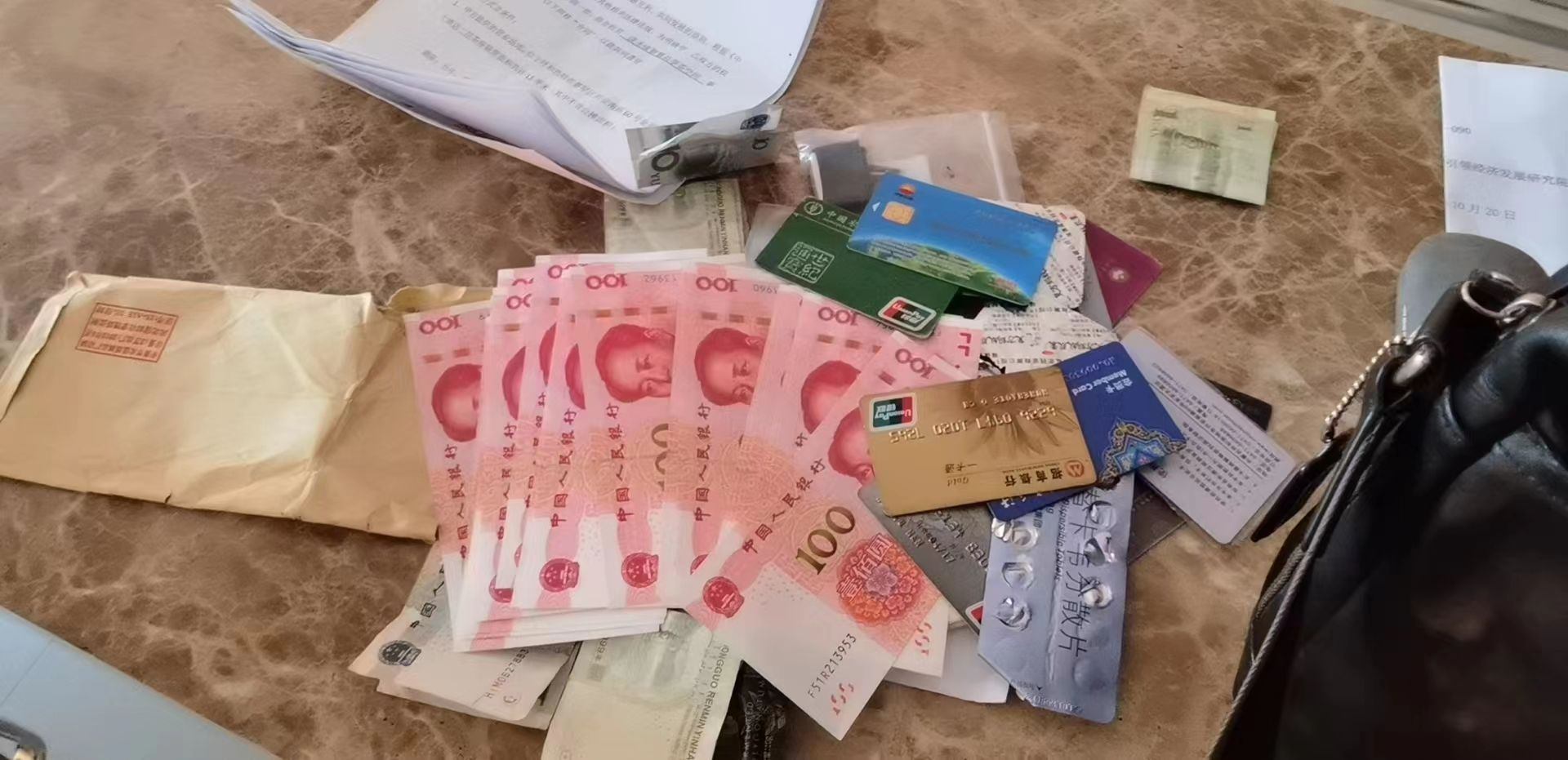 原來(lái),當(dāng)天15時(shí)許,呼和浩特市迎新路辦事處團(tuán)結(jié)小區(qū)社區(qū)網(wǎng)格員聶霞和社區(qū)耿書(shū)記在團(tuán)結(jié)小區(qū)東區(qū)物貿(mào)樓排查工作中,發(fā)現(xiàn)一垃圾箱旁邊有一個(gè)黑色的提包,打開(kāi)一看,里面裝有近3000元現(xiàn)金和身份證、銀行卡以及多個(gè)貴重物品,想到失主一定很著急,聶霞馬上根據(jù)失主身份證上的信息聯(lián)系到失主所在的社區(qū)網(wǎng)格員劉淑萍,經(jīng)過(guò)幾番周折,終于與失主取得聯(lián)系。經(jīng)過(guò)電話溝通確認(rèn),半小時(shí)后,失主劉先生趕到團(tuán)結(jié)小區(qū)社區(qū)居委會(huì),認(rèn)領(lǐng)了自己的物品。