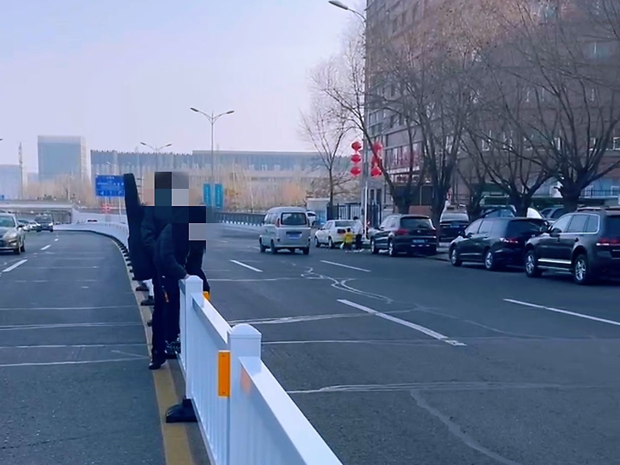 2月18日下午,記者來到興泰東河灣小區(qū),看到在北垣街和騰飛路十字路口至海東路與騰飛路交叉口之間的護欄顏色較新,護欄全長有約一公里,在小區(qū)居民進出的位置或者公交車站牌附近沒有設置開口。有一些公交車下車的乘客,看往來車輛少時便冒險翻越護欄。