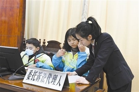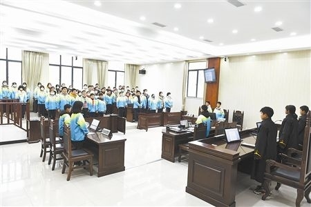 伴隨著“小法官”手中的法槌落下,一場(chǎng)庭審體驗(yàn)活動(dòng)正式開(kāi)始。在法庭干警的指導(dǎo)下,8名學(xué)生“一秒入戲”,從宣讀法庭紀(jì)律、核對(duì)當(dāng)事人身份,到法庭調(diào)查、舉證質(zhì)證、法庭辯論,整個(gè)庭審程序嚴(yán)謹(jǐn)規(guī)范、秩序井然。