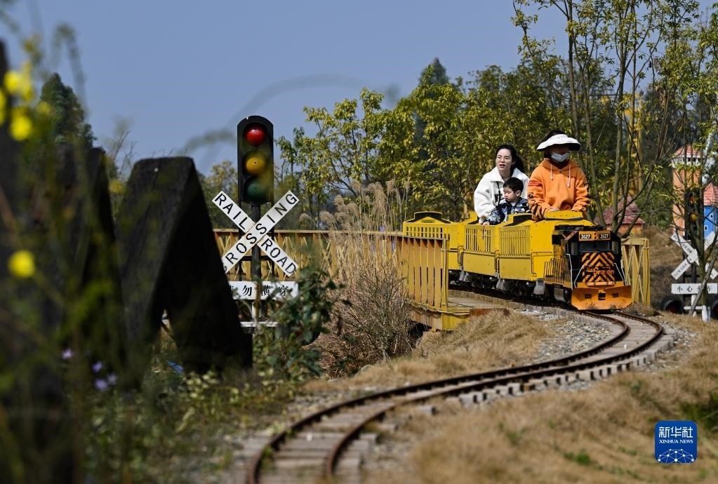 2月25日,游客在四川眉山市仁壽縣中鐵火車來斯休閑體驗(yàn)園乘坐小火車游玩。