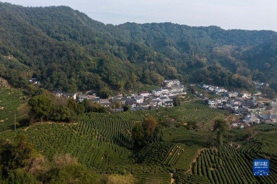 3月13日,空中俯瞰梅家塢村的西湖龍井茶地(無人機(jī)照片)。