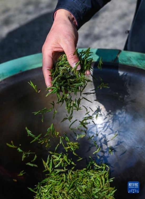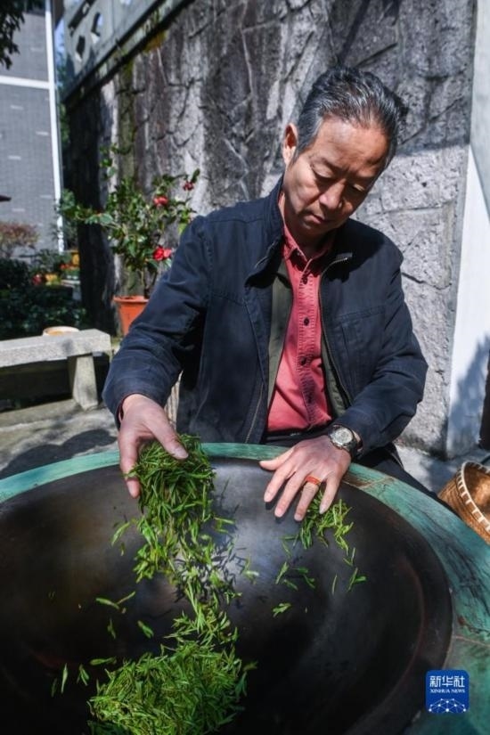 3月13日,龍井村茶農(nóng)在手工炒制西湖龍井“明前茶”。