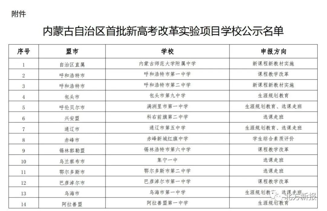 內(nèi)蒙古首批新高考改革實(shí)驗(yàn)項(xiàng)目學(xué)校名單公示
