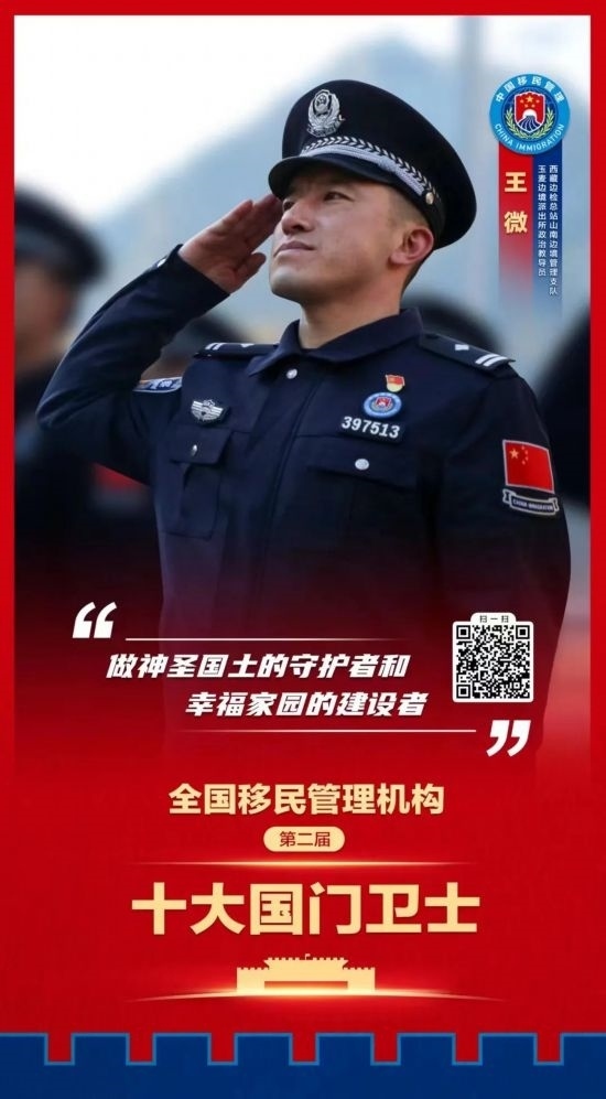 國家移民管理機構十大國門衛(wèi)士每3年評選表彰一次,獲評人員是全國移民管理警察隊伍中政治立場堅定、能力素質過硬、工作實績卓著、紀律作風優(yōu)良、模范作用顯著的先進典型,是新時代移民管理警察的杰出代表。他們忠誠履職、無私奉獻,在捍衛(wèi)國家政治安全、維護國門邊境穩(wěn)定、促進經(jīng)濟社會發(fā)展過程中作出了突出貢獻,生動反映了國家移民管理體制改革的豐碩成果,展示了移民管理警察良好精神風貌,展現(xiàn)了移民管理機構新形象、新作為。