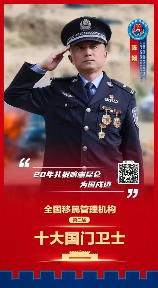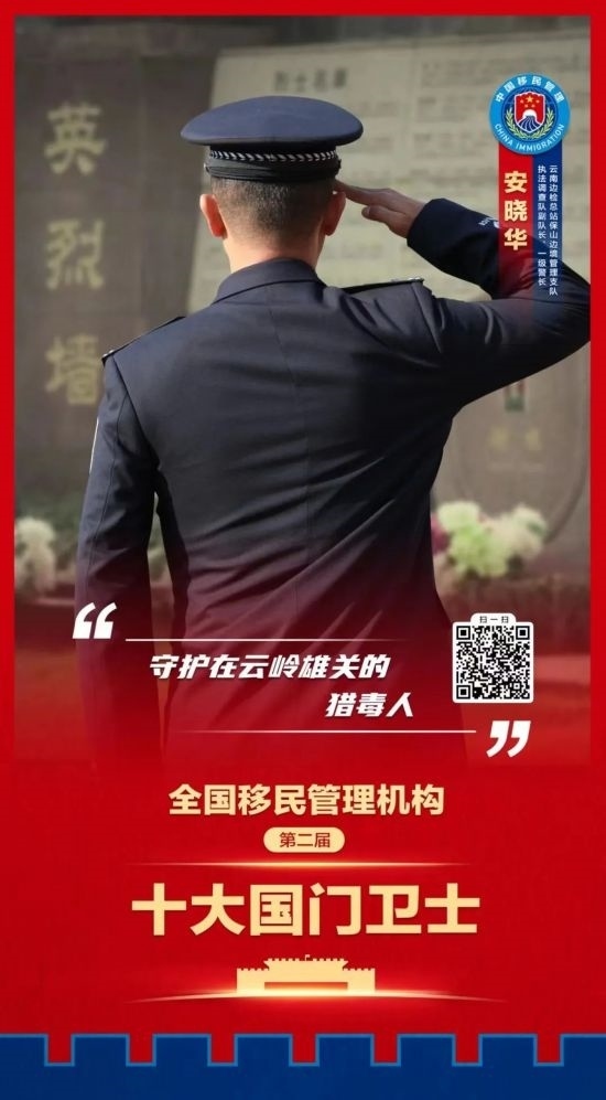 10名來自邊防檢查和邊境管理一線的移民管理警察被表彰為全國移民管理機構第二屆十大國門衛(wèi)士,并榮記個人一等功。他們分別是: