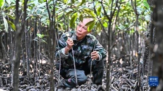 今年68歲的莫積瑞老人,1993年開始在廣西山口紅樹林保護(hù)區(qū)管理處保護(hù)員崗位任職。2015年,莫積瑞退休,因?yàn)榻?jīng)驗(yàn)豐富被返聘,繼續(xù)從事紅樹林保護(hù)工作。