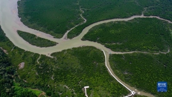 這是廣西山口紅樹林保護(hù)區(qū)一角(5月20日攝,無人機(jī)照片)。