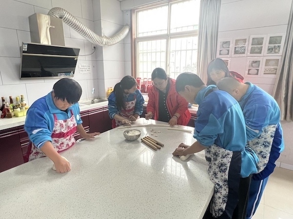 走進(jìn)陜西省渭南市特殊教育學(xué)校,手鼓聲、搟面聲、冰壺與地面摩擦聲此起彼伏;由教師扮演的“超市收銀員”正為“購(gòu)物”的學(xué)生結(jié)賬;“自助取款機(jī)”前,幾位小朋友正排著隊(duì)學(xué)習(xí)如何存取現(xiàn)金;醫(yī)院“問(wèn)診臺(tái)”、“掛號(hào)處”等模擬窗口應(yīng)有盡有……在這里,飽含愛(ài)心、耐心、責(zé)任心的教學(xué)態(tài)度和幫助特殊兒童自理、自立、自強(qiáng)的教育初衷滋養(yǎng)著每一名學(xué)生平安成長(zhǎng)。