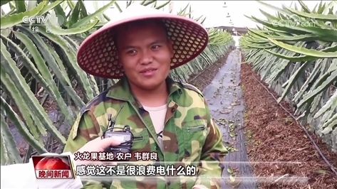 火龍果基地 農(nóng)戶 韋群良:為什么要開燈,感覺這不是很浪費(fèi)電什么的,就這樣覺得,后面才知道開原來(lái)是開燈催花,要花來(lái)得更快,一年開燈的話也多個(gè)一兩批花。