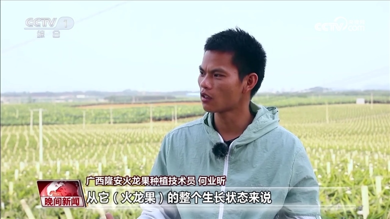 隆安火龍果種植技術(shù)員 林冠熙:不再是以前的那種面朝黃土背朝天的農(nóng)業(yè)模式,有時(shí)我們可能在電腦面前點(diǎn)開開關(guān),我們就可以給植物灌水灌肥。最開心的應(yīng)該是看到豐收的季節(jié),看到滿地滿果通紅的畫面,就覺得這是豐收的喜悅。