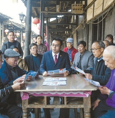 四川省廣安市廣安區(qū)人民檢察院干警向居民宣講法律知識,引導(dǎo)居民積極主動參與保護生態(tài)環(huán)境等,為檢察公益訴訟提供有效線索。張國盛攝(人民視覺)