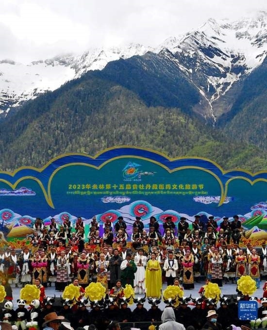 5月28日拍攝的米林市第十五屆黃牡丹藏醫(yī)藥文化旅游節(jié)開幕式現(xiàn)場(chǎng)。