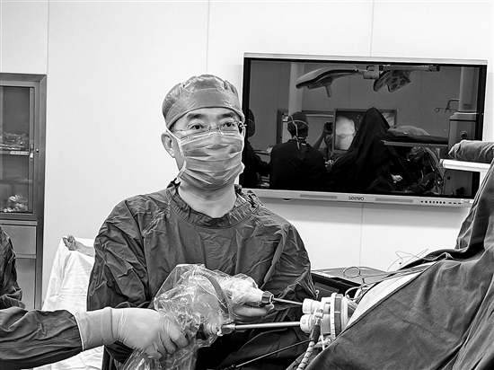 藺宏偉在進(jìn)行切胃減重手術(shù)。這樣的手術(shù)他每年會(huì)完成300多臺(tái)。受訪者供圖
