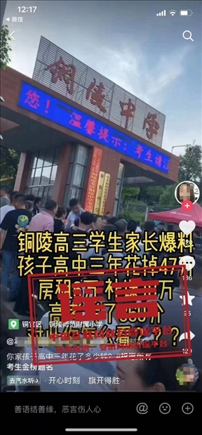 謠言:安徽銅陵一學(xué)生高中三年花費(fèi)47萬元 高考考了369分?