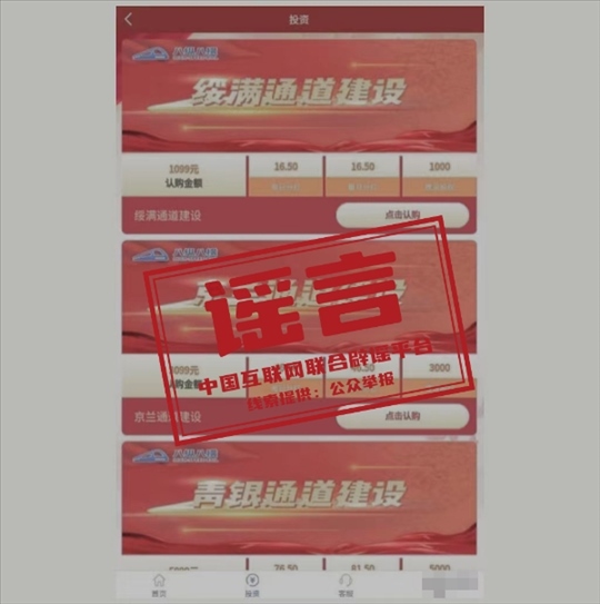 真相:近期,中國(guó)國(guó)家鐵路集團(tuán)有限公司接到群眾來電咨詢,反映一款名為“八縱八橫”APP程序自稱是國(guó)鐵集團(tuán)授權(quán)推出的理財(cái)產(chǎn)品,設(shè)有“呼南通道建設(shè)”“沿海通道建設(shè)”“京蘭通道建設(shè)”等9款投資理財(cái)項(xiàng)目,并將國(guó)鐵集團(tuán)公司簡(jiǎn)介、新聞報(bào)道等內(nèi)容在APP中用于宣傳推廣。對(duì)此,國(guó)鐵集團(tuán)發(fā)布嚴(yán)正聲明稱,國(guó)鐵集團(tuán)及所屬單位從未授權(quán)或利用其他網(wǎng)站、APP、微信公眾號(hào)、微博等形式以“國(guó)鐵集團(tuán)”或“中國(guó)鐵路”的名義銷售投資理財(cái)產(chǎn)品,也沒有通過這樣的方式籌集鐵路建設(shè)資金。不法分子利用“八縱八橫”APP程序所實(shí)施的行為和發(fā)布的內(nèi)容已涉嫌詐騙,請(qǐng)公眾提高警惕,謹(jǐn)慎區(qū)分,注意防騙。如已被騙,請(qǐng)立即向公安機(jī)關(guān)報(bào)案。(來源:“中國(guó)鐵路”微信公眾號(hào))