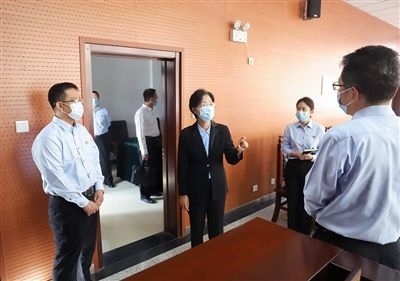 天津高院黨組書記、院長李靜(右三)到靜海區(qū)法院調(diào)研,實地查看靜海鎮(zhèn)人民法庭。