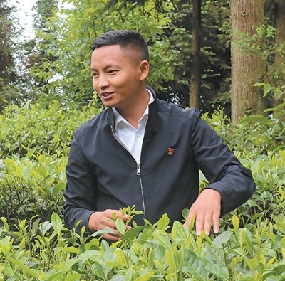 立克攏攏在茶園查看茶葉病蟲(chóng)害防治情況。受訪者供圖