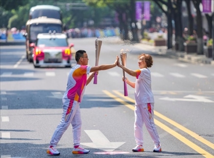 杭州亞運(yùn)會(huì)火炬?zhèn)鬟f到將滿80歲的董四教手中。作為11日火炬?zhèn)鬟f紹興站活動(dòng)的第71棒火炬手,她雙手涂著亞運(yùn)主題的彩色指甲,高舉“薪火”從人群中小跑而過。與董四教相似的是,一群平均年齡超過70歲的退休音樂愛好者,組成了一支老年“搖滾樂隊(duì)”。面對(duì)衰老和離散,他們創(chuàng)造了一種可能性,對(duì)抗身體和生活的失控,找到了縫合傷痛、抵抗歲月、怒放生命的方式。學(xué)會(huì)彈奏,他們只是唱歌;注入歲月,他們開始歌唱。