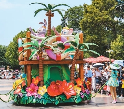 上海迪士尼樂園達菲繽紛夏日巡游正在精彩上演,吸引了眾多游客。