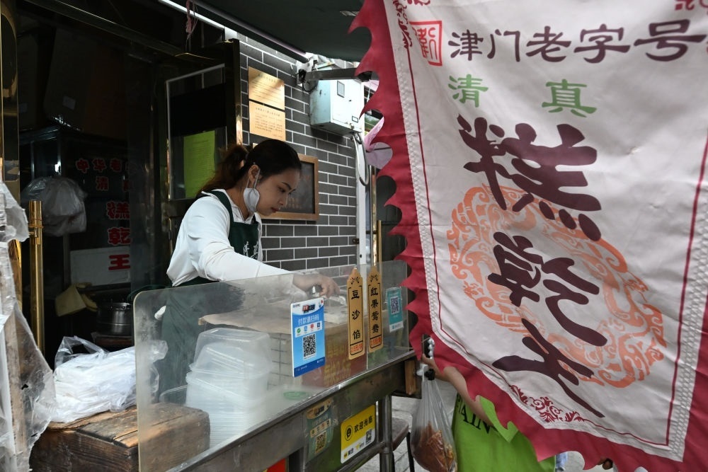 市民、游客正在天津吃早點(diǎn)。新華社記者 孫凡越 攝