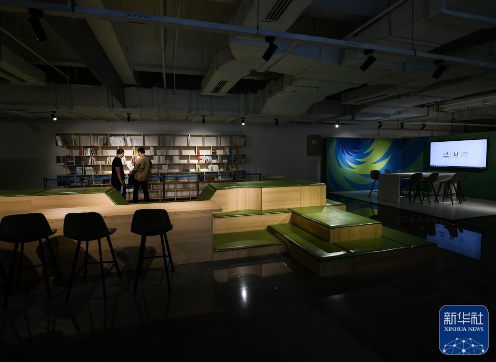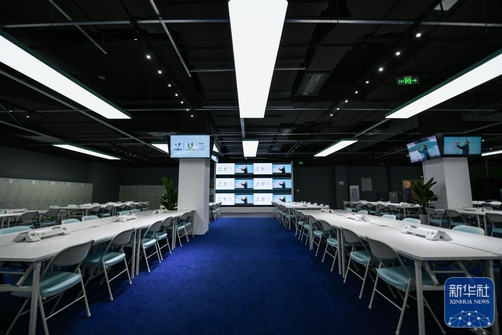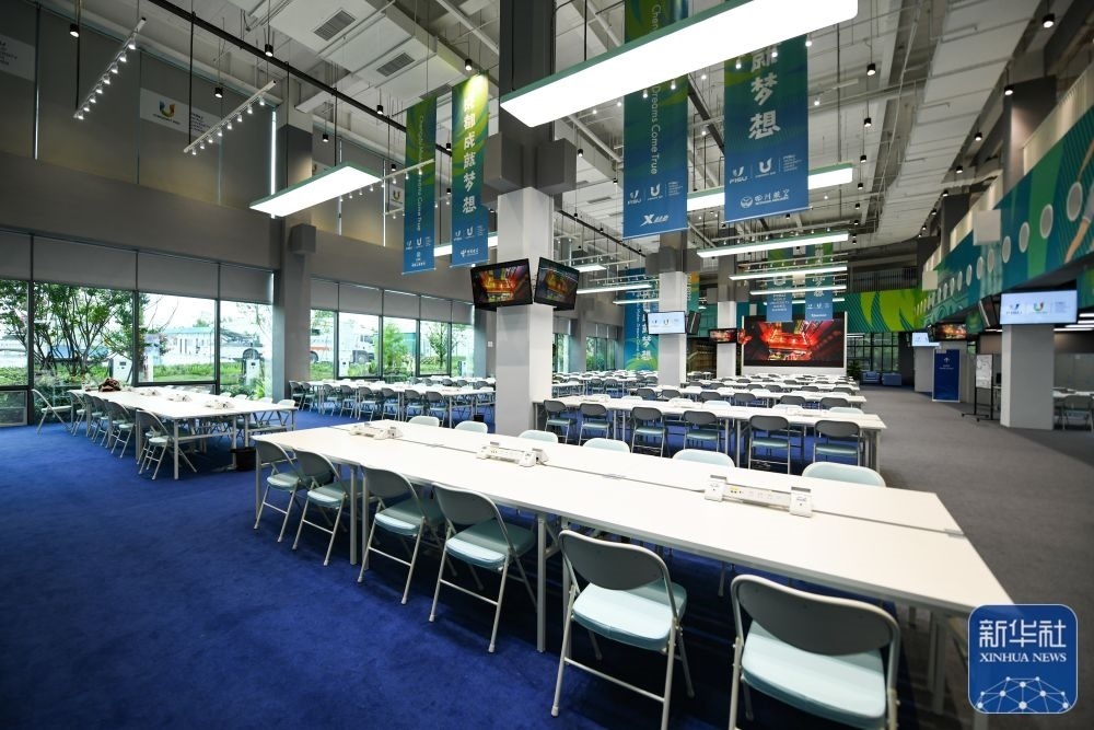 ?↑這是7月13日拍攝的成都大運(yùn)會(huì)主媒體中心的會(huì)客廳。新華社記者 王曦 攝
