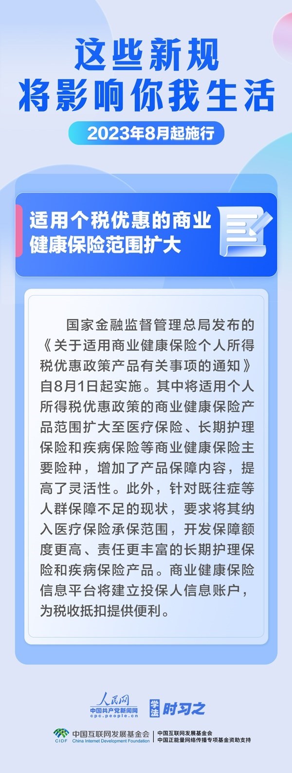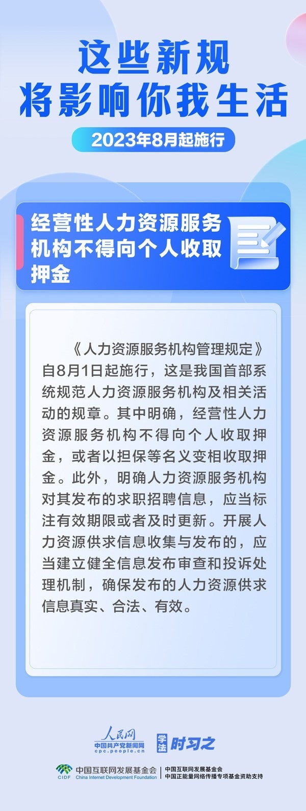 促進(jìn)生成式人工智能健康發(fā)展;擴(kuò)大適用個(gè)稅優(yōu)惠政策的商業(yè)健康保險(xiǎn)產(chǎn)品范圍;明確經(jīng)營(yíng)性人力資源服務(wù)機(jī)構(gòu)不得向個(gè)人收取押金……8月,這些新規(guī)施行,將影響你我生活。
