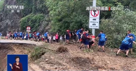 8月2日上午,現(xiàn)場總指揮決定護(hù)送自愿離開的被困群眾進(jìn)行撤離。在撤離的隊(duì)伍中,有38名來自新疆參加北京游學(xué)的孩子,他們最小的6歲,平均年齡也只有8歲。為了保障轉(zhuǎn)移時的安全,撤離線路選擇了相對安全的盤山公路進(jìn)行。途中經(jīng)過落石塌方險(xiǎn)區(qū)的時候,消防員們依次排開,在斷崖旁形成人墻,用身體筑起一條防線。遇到水流,消防員們把孩子們抱著傳遞到安全位置再繼續(xù)前行。
